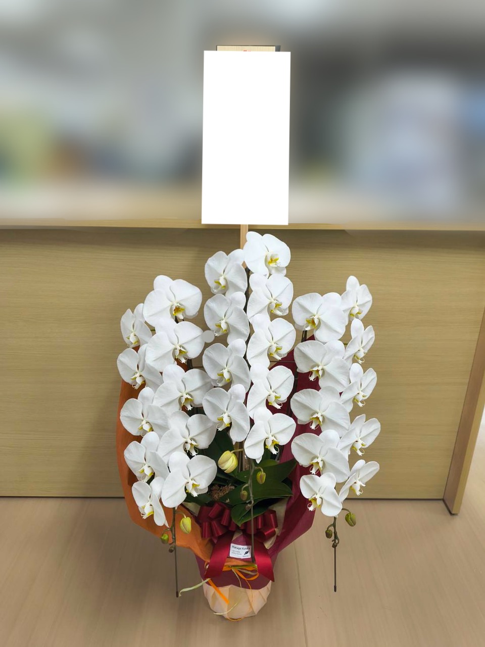 大学病院の教授就任のお祝いで胡蝶蘭をお届けさせていただきました。
