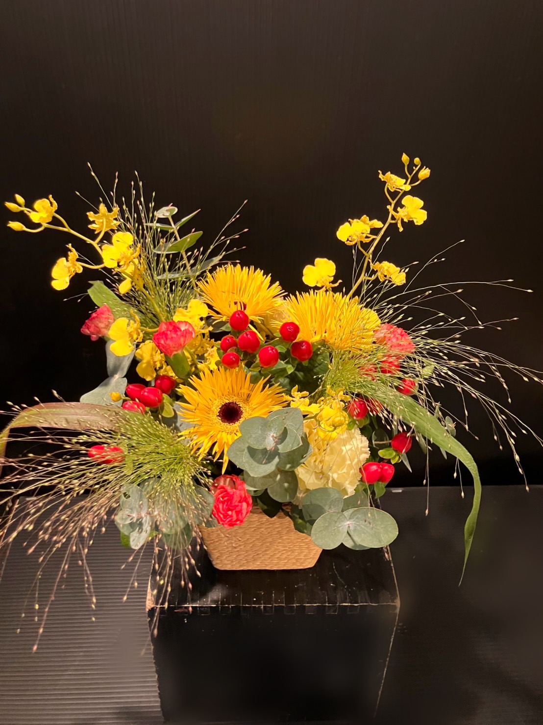 お祝いカラーである黄色をメインに明るい雰囲気でお作りいたしました✨
