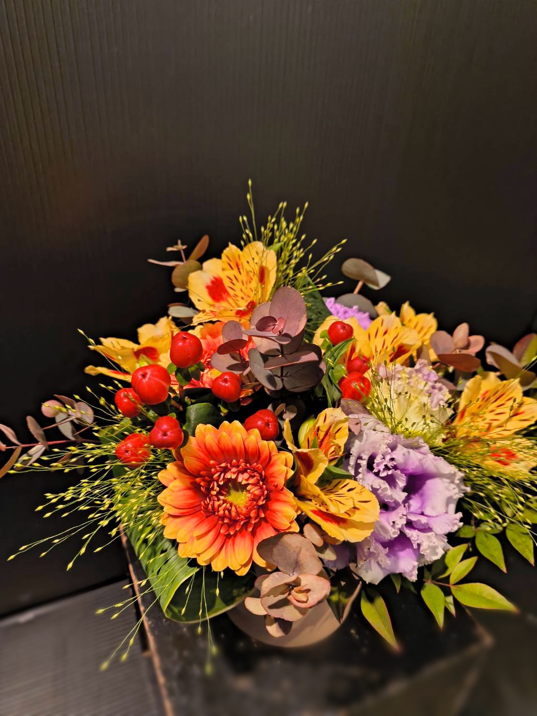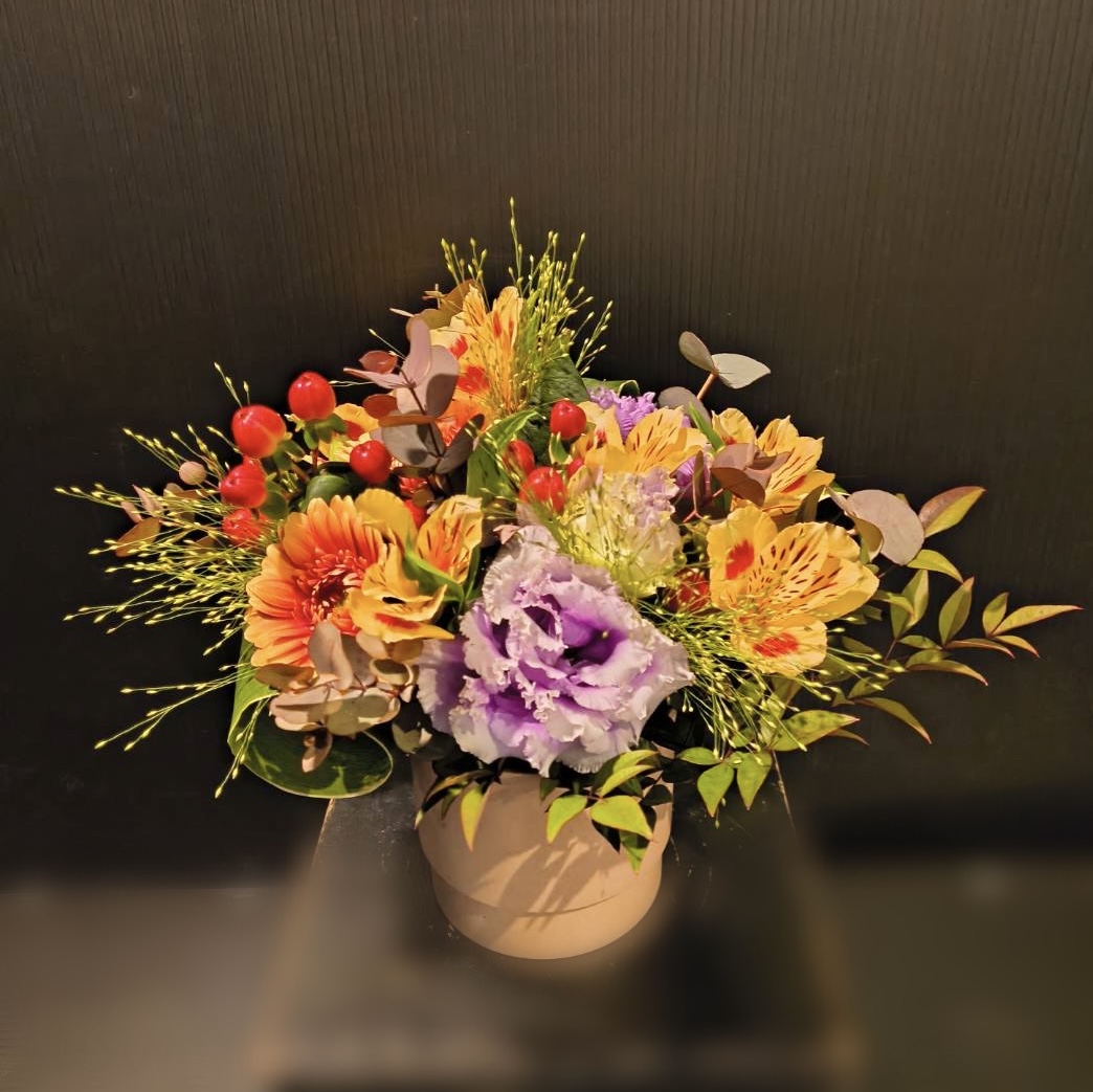 お祝いの気持ちがしっかり伝わる、贈り物にぴったりのアレンジメントです😌✨
